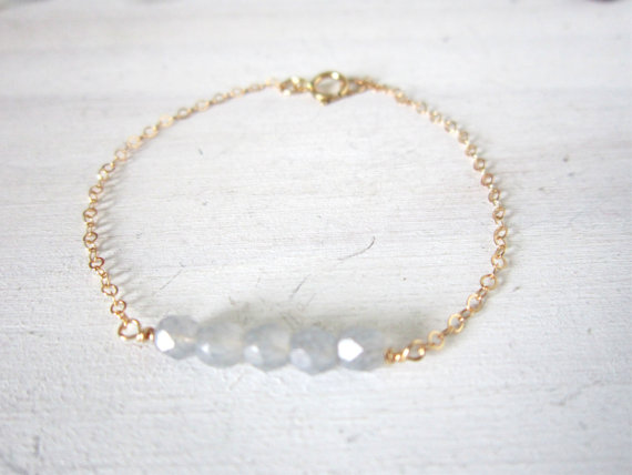 Tiny faceted gray czech glass beads are wire wrapped onto delicate gold filled chain for a pretty bracelet that adds a great touch of color to your stack.