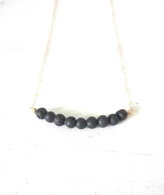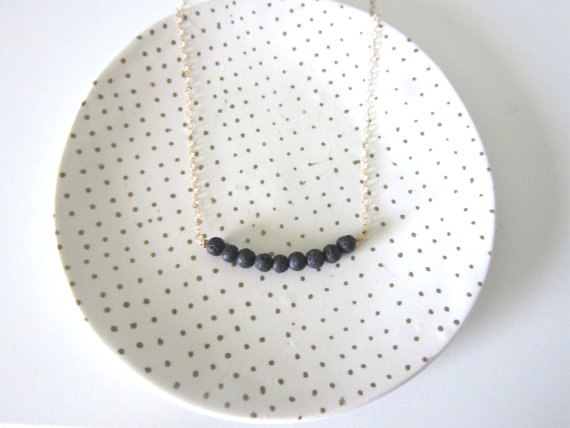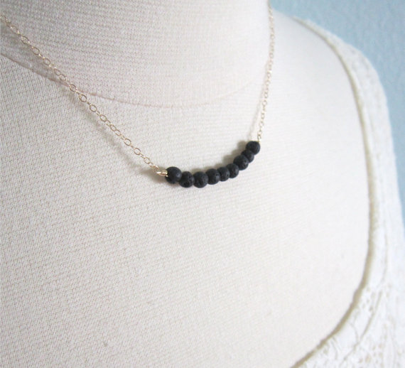 Tiny real lava rock beads are wire wrapped onto delicate gold filled chain for a gorgeous piece for everyday.