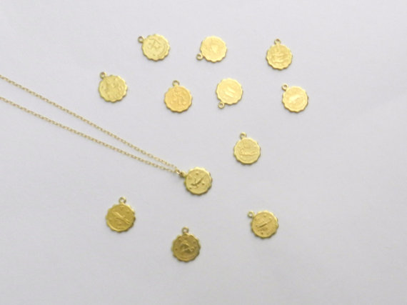 A tiny brass astrological charm glides along 14k gold filled chain for a fun personalized necklace you can wear everyday!