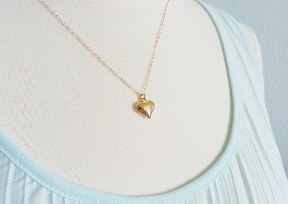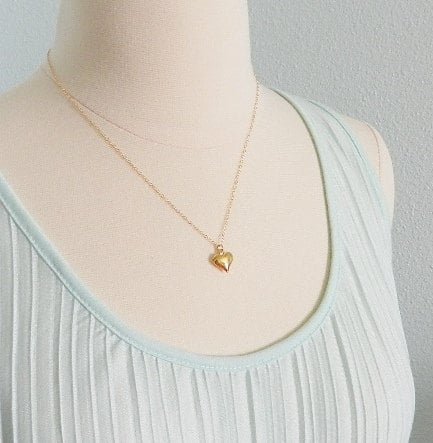 A sweet little gold plated heart is suspended by delicate 14k gold filled chain for a lovely necklace for everyday.