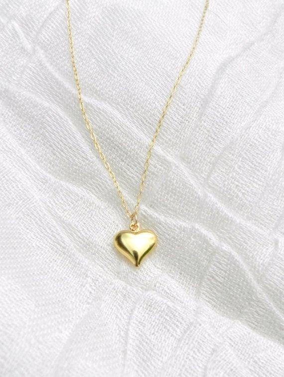 Gold heart necklace, heart of gold, delicate modern jewelry