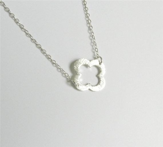 A brushed sterling silver quatrefoil clover is suspended by delicate sterling silver chain for a perfect everyday necklace