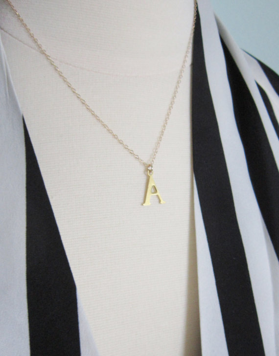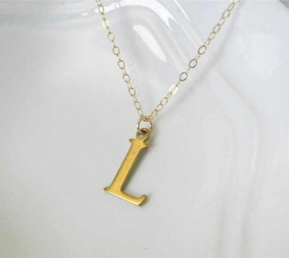 Your choice of raw brass letter dangling simply from delicate gold filled chain