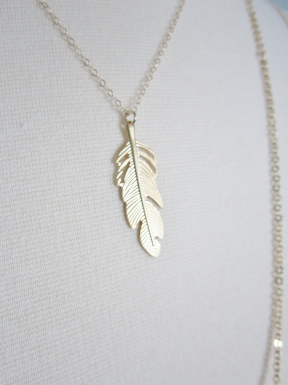 Sleek gold feather is suspended by delicate gold filled chain for a pretty look perfect for everyday